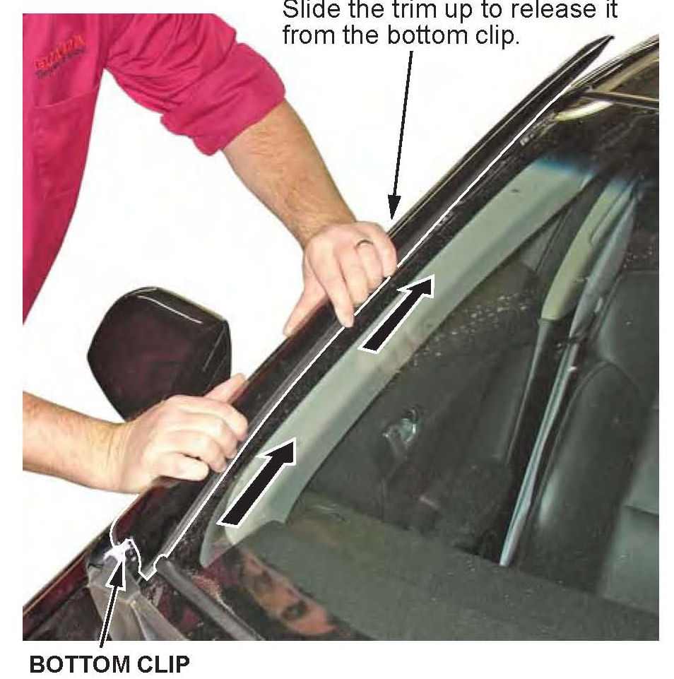 ^ The bridges on the windshield side trim may break when removing the trim.