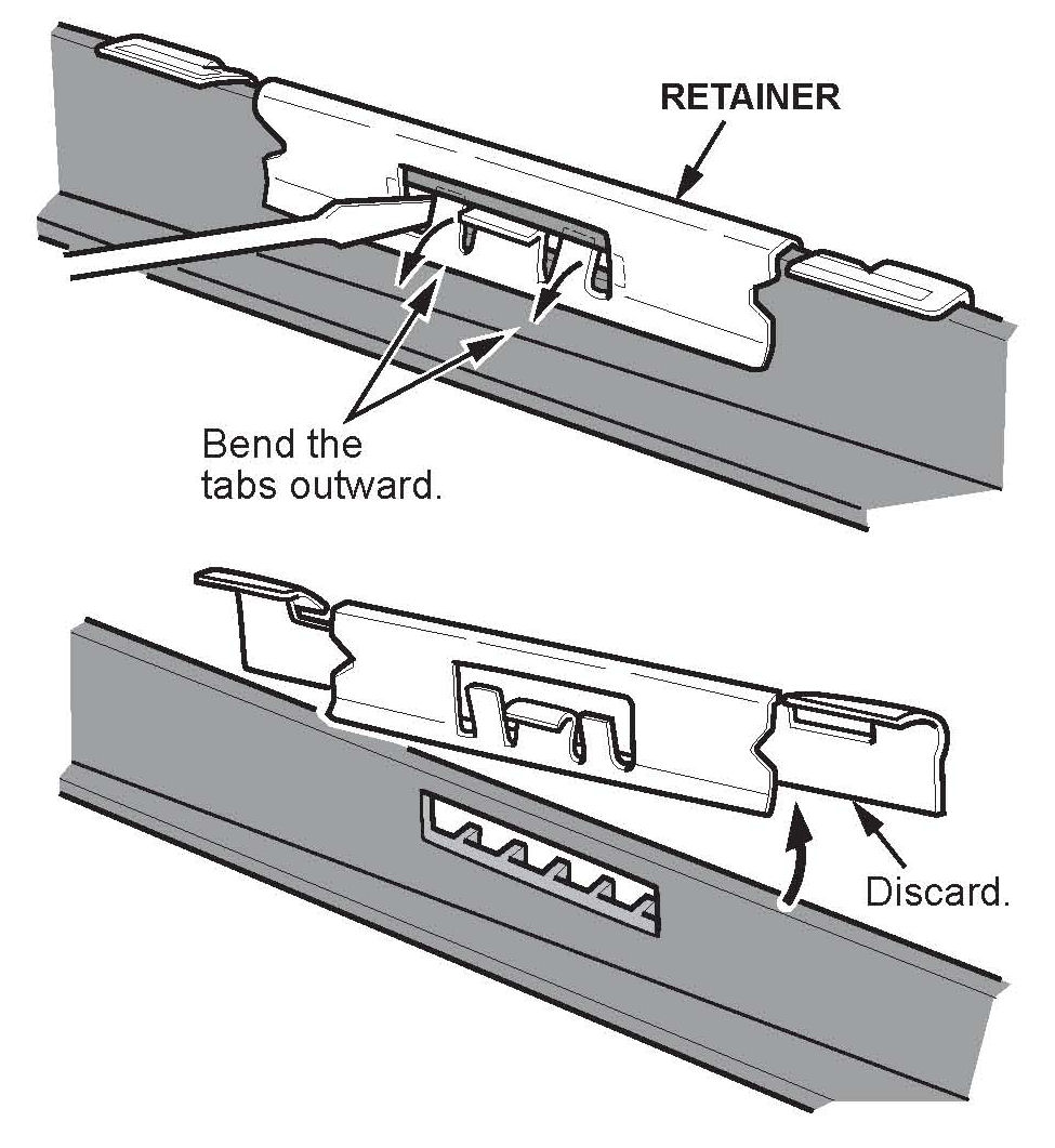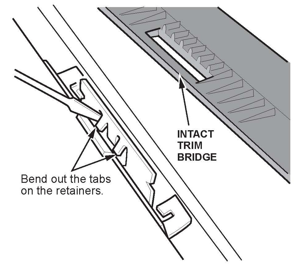 4. Inspect the trim for retainers. If any retainers are attached, bend the tabs out to remove them from the trim.