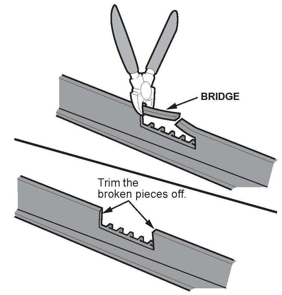^ The trim will click into place only where the bridge on the trim is intact.
