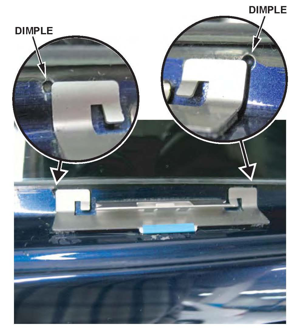 ^ If the bottom clip retainer tabs are broken or stress whitened, discard the trim and use a new windshield side trim to complete the repair, then go to step 9.