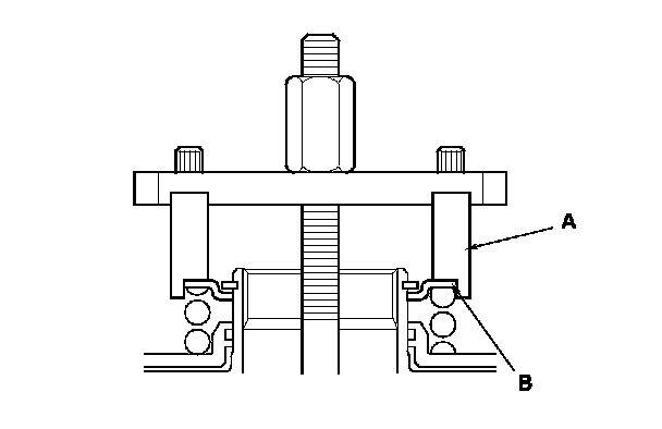 12. Be sure the clutch spring compressor (A) is adjusted to make full contact with the spring retainer (B) on the 4th and 5th clutches.