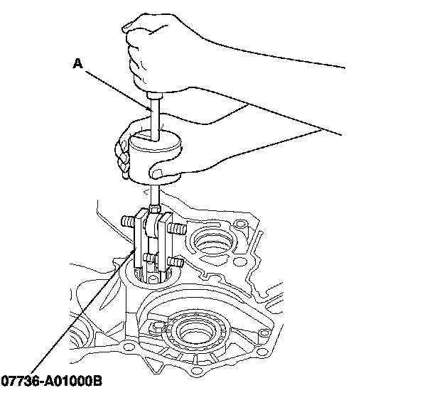 1. Remove the countershaft bearing using the 25-40 mm adjustable bearing puller and a commercially available 3/8 "-16 slide hammer (A).