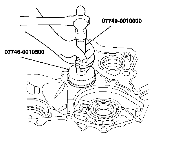 4. Install the countershaft bearing securely in the torque converter housing using the driver handle and the 62 x 68 mm attachment.