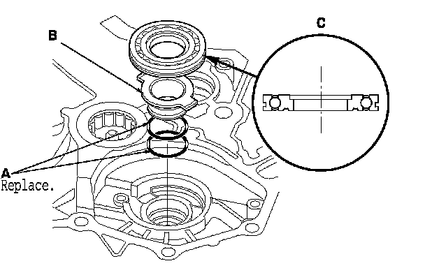 5. Install a new secondary shaft bearing (C) in the direction shown.