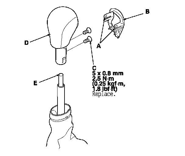 3. Remove the screws (C), and remove the shift lever knob (D).