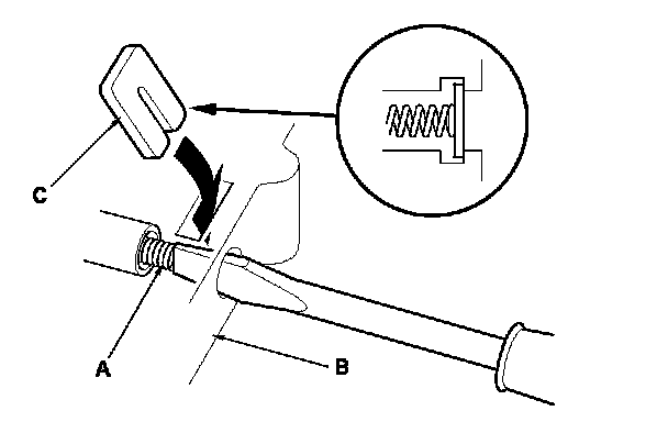 3. Install all the springs and the seats. Insert the spring (A) in the valve, then install the valve in the valve body (B). Push the spring in using a screwdriver, then install the spring seat (C).