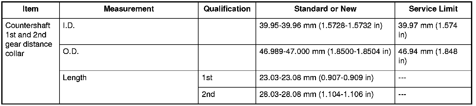 Countershaft 1ST and 2ND Gear Distance Collar Specifications (M/T)