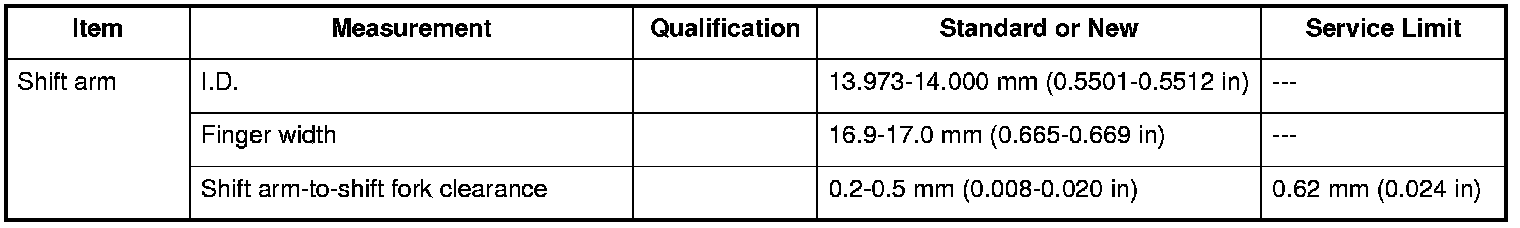 Shift Arm Specifications (M/T)