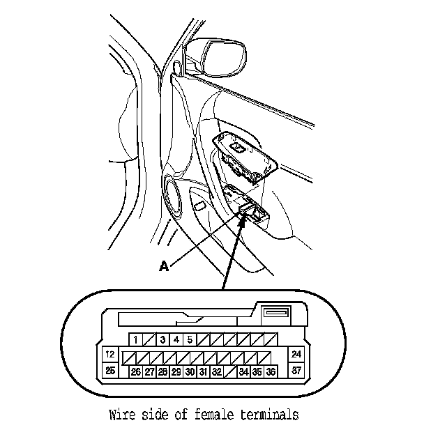 2. Test the motor in each direction by connecting battery power and ground to the front passenger's power window switch 37P connector (A) according to the table.