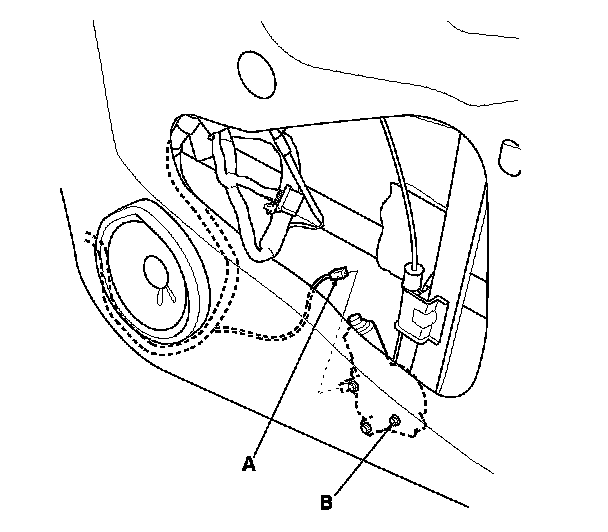 5. Disconnect the 6P connector (A) from the front passenger's power window motor (B).
