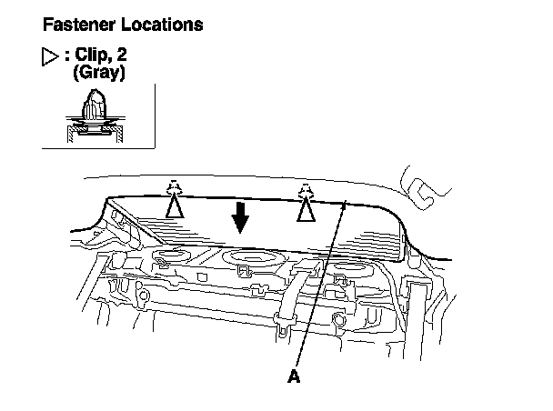 4. Pull down the rear area of the headliner (A) by detaching the clips. Take care not to bend the headliner excessively, or you may crease or break it.