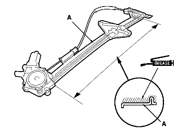 9. Apply multipurpose grease to all the sliding surfaces of the regulator (A) where shown.