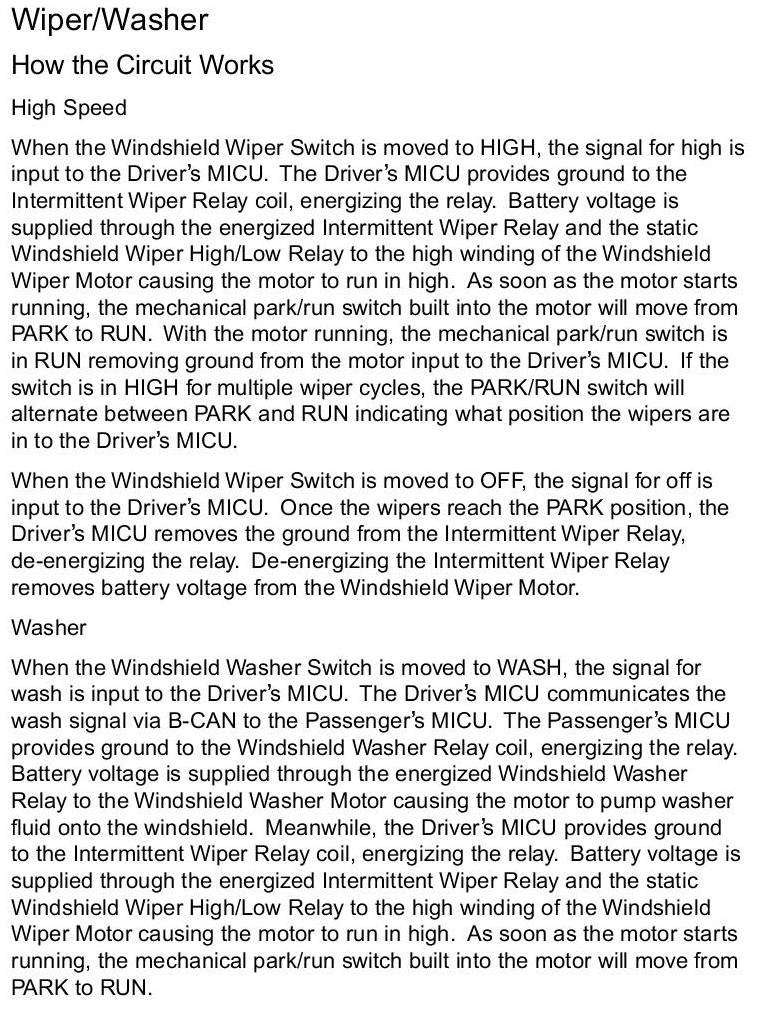 Wiper and Washer Systems: Description and Operation