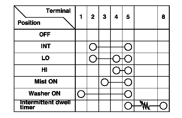 5. Check for continuity between the terminals in each switch position according to the table.
