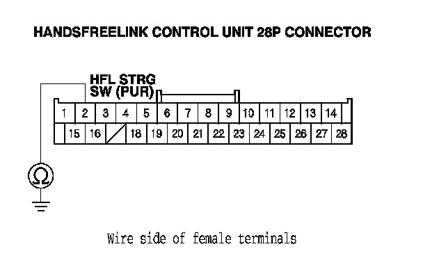 11. Check for continuity between the HandsFreeLink control unit 28P connector terminal No. 2 and body ground.