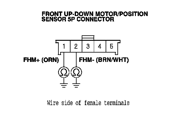 29. Check for continuity between front up-down motor/position sensor 5P connector terminals No. 1 and No. 2 and body ground.