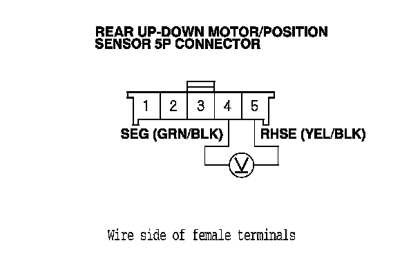 17. Measure the voltage between rear up-down motor/position sensor 5P connector terminals No. 4 and No. 5.