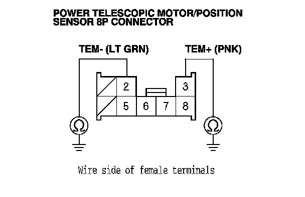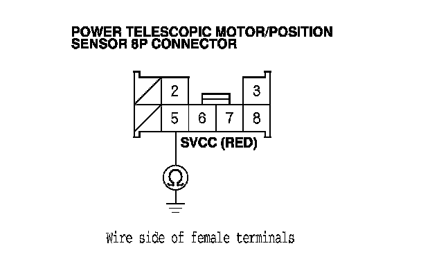 22. Check for continuity between power telescopic motor/position sensor 8P connector terminal No. 5 and body ground.