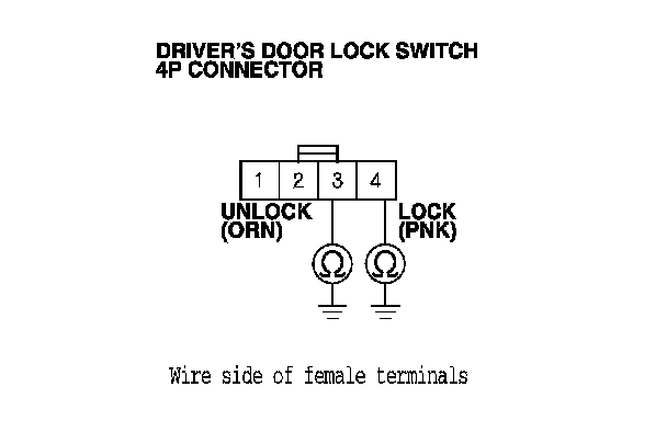 12. Check for continuity between body ground and driver's door lock switch 4P connector terminals No. 3 and No. 4 individually.