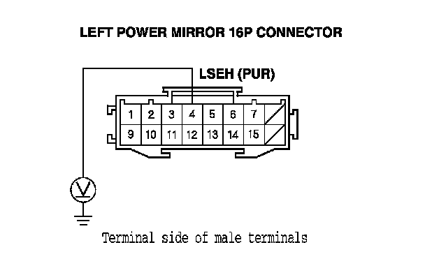12. Check for continuity between left power mirror 16P connector terminals No. 4 and No. 12.