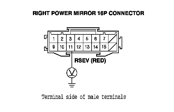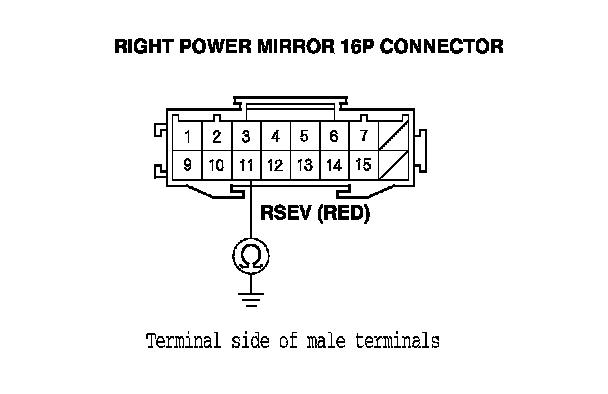 12. Check for continuity between right power mirror 16P connector terminals No. 11 and No. 12.