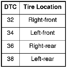 DTC 32, 34, 36, 38: Tire Pressure Sensor Signal Failure