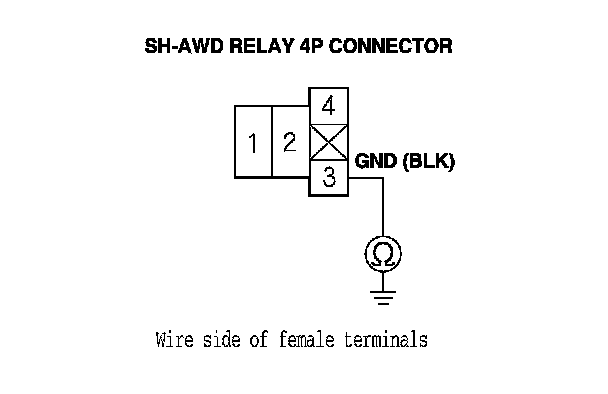 13. Check for continuity between SH-AWD relay 4P connector terminals No. 1 and No. 4 to body ground.