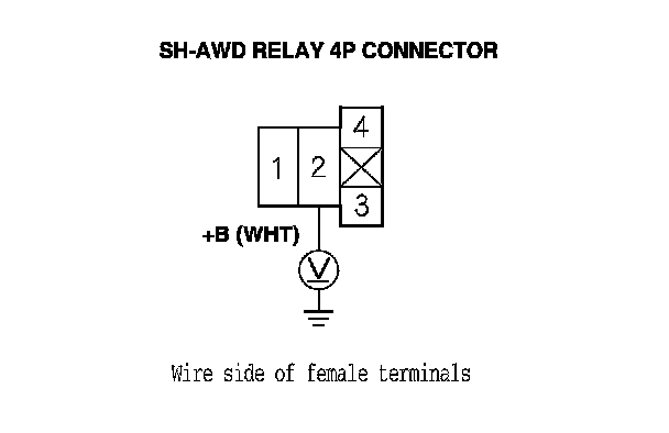 12. Measure the voltage between SH-AWD relay 4P connector terminal No. 2 and body ground.