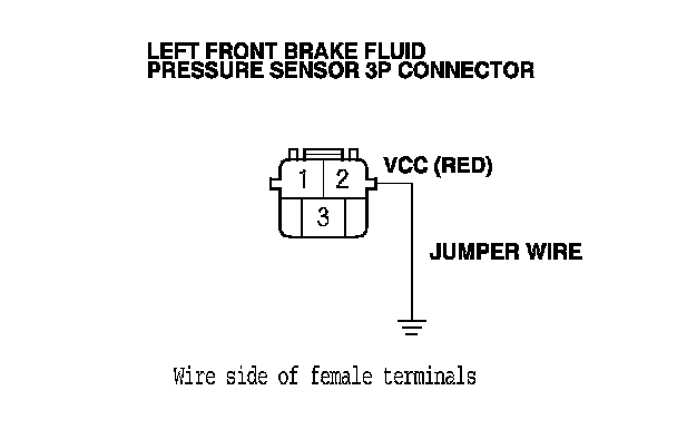 12. Remove the jumper wire from the left front brake fluid pressure sensor.