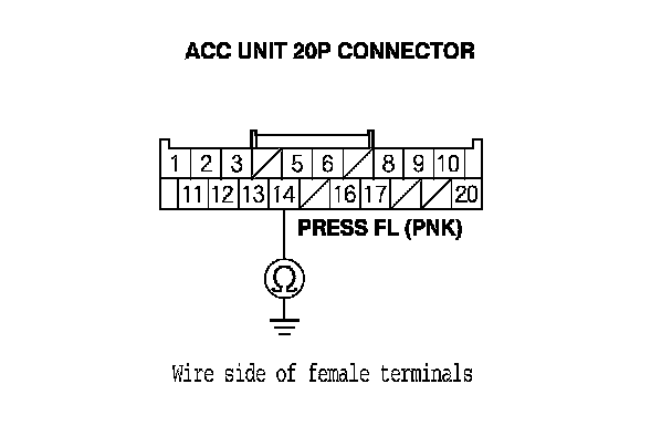 18. Check for continuity between ACC unit 20P connector terminal No. 14 and body ground.