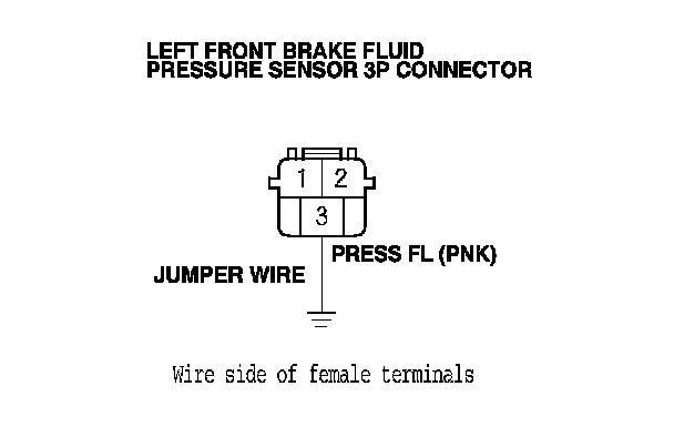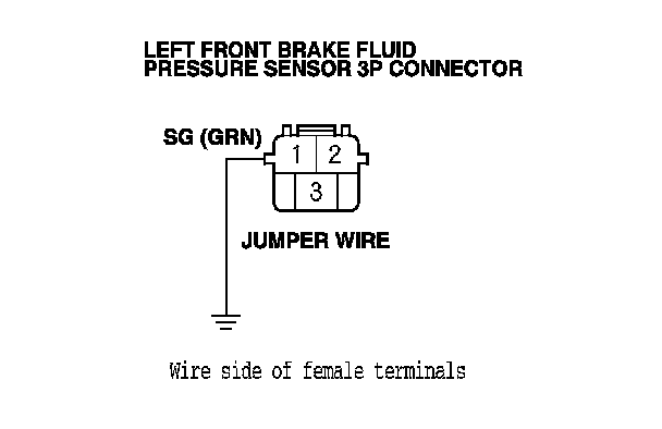 18. Connect left front brake fluid pressure sensor 3P connector terminal No. 2 to body ground with a jumper wire.
