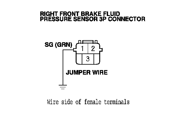 10. Connect right front brake fluid pressure sensor 3P connector terminal No. 2 to body ground with a jumper wire.