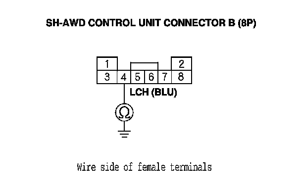 12. Check for continuity between SH-AWD control unit connector terminal B4 and body ground.