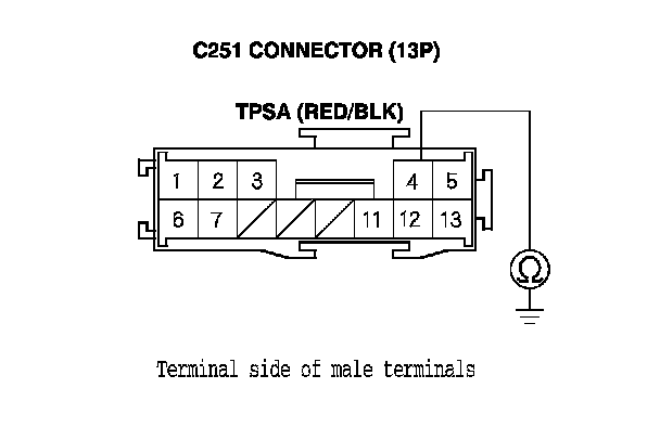 10. Check for continuity between C251 connector (13P) terminal No. 4 and body ground.
