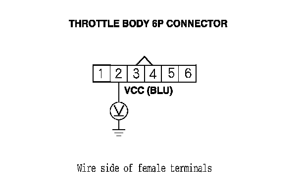 11. Measure the voltage between throttle body 6P connector terminal No. 2 and body ground.
