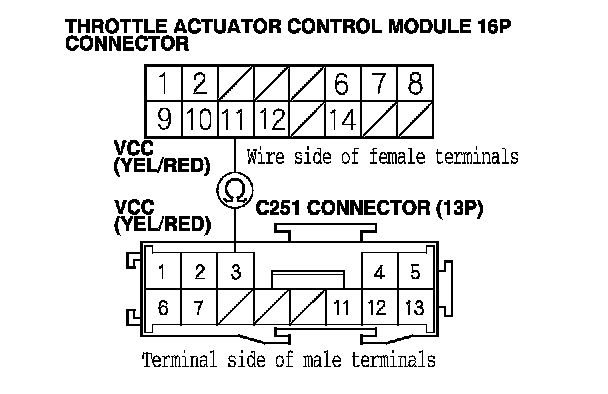 18. Check for continuity between throttle actuator control module 16P connector terminal No. 11 and C251 connector (13P) terminal No. 3.
