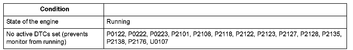 The TP sensor A output voltage is 4.8 V or more for at least 200 milliseconds.