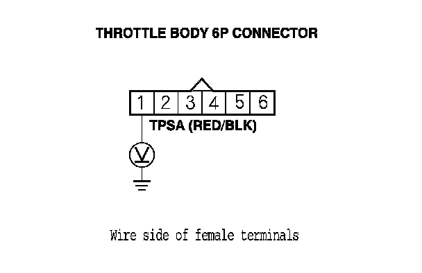 5. Measure the voltage between throttle body 6P connector terminal No. 1 and body ground.