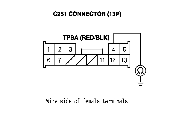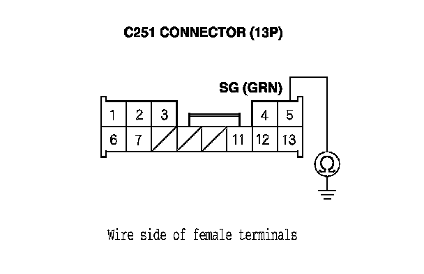 17. Check for continuity between C251 connector (13P) terminal No. 5 and body ground.