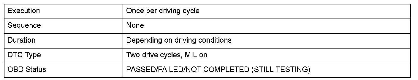 Monitor Execution, Sequence, Duration, DTC Type, OBD Status