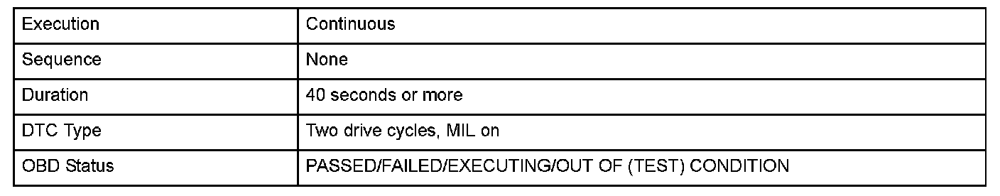 Monitor Execution, Sequence, Duration, DTC Type, OBD Status