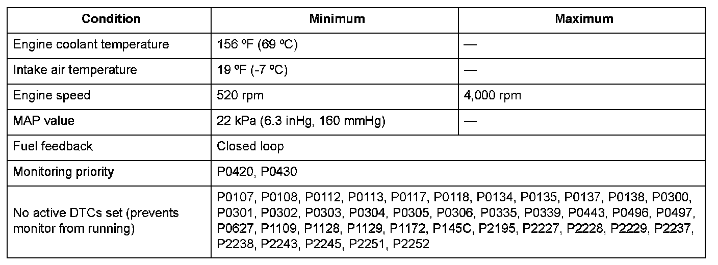 Monitor Execution, Sequence, Duration, DTC Type, OBD Status