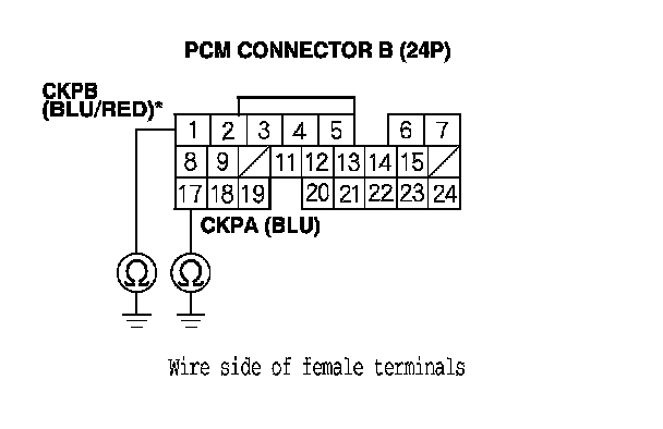 YES - Repair short in the wire between the PCM (B17 (B1)*) and CKP sensor A/B, then go to step 18.