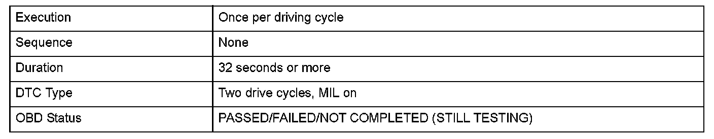 Monitor Execution, Sequence, Duration, DTC Type, OBD Status