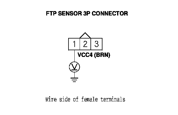 14. Measure the voltage between FTP sensor 3P connector terminal No. 1 and body ground.