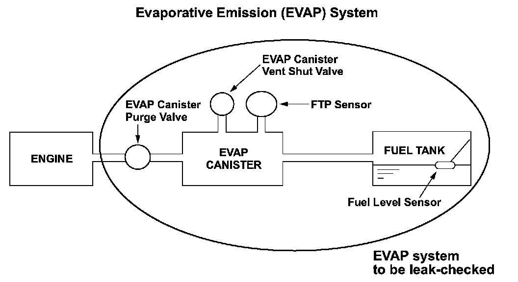 The evaporative emission (EVAP) leak detection system uses an engine off natural vacuum (EONV) method. The EONV method detects leakage from the change in fuel tank pressure via the fuel tank pressure (FTP) sensor with the engine off.