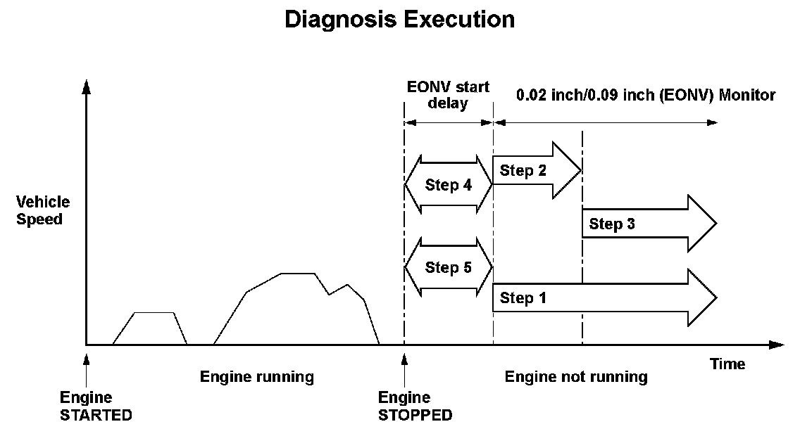 - If a "0.02 inch leak" is detected, it is identified as a malfunction; the diagnosis is complete.