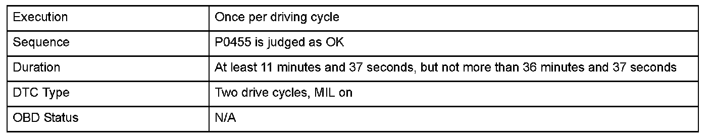 After the engine has stopped, the powertrain control module (PCM) monitors the variation of the FTP sensor output to detect "no 0.09 inch leak" depending on the variation of the pressure inside the fuel tank.
