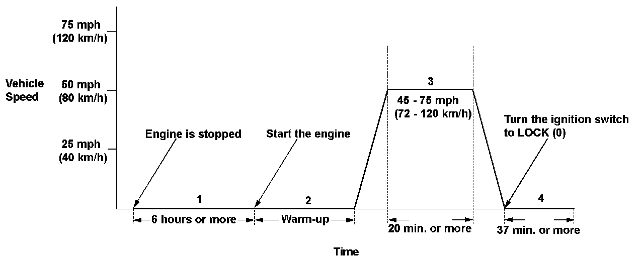 3. Drive the vehicle immediately at a speed between 45 - 75 mph (72 - 120 km/h) for at least 20 minutes.