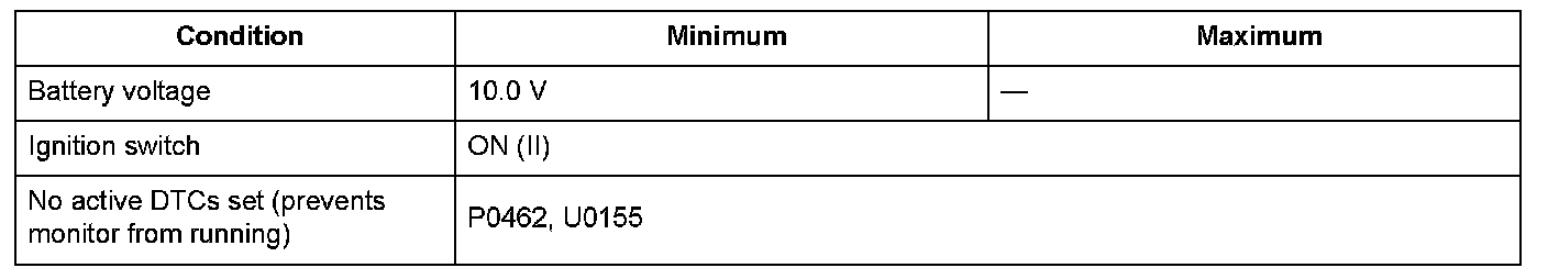 The fuel level sensor (fuel gauge sending unit) voltage is 4.92 V or more for at least 5 seconds.